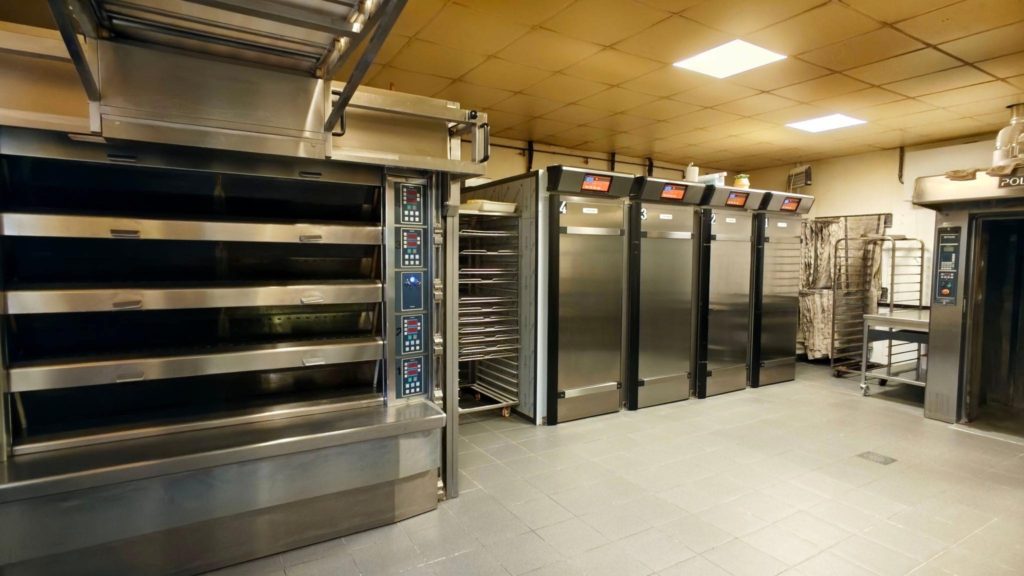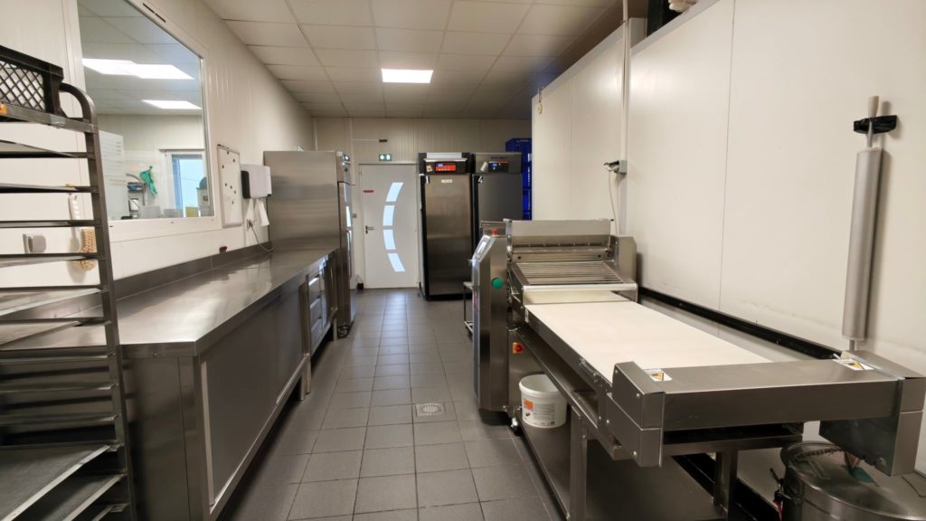 Fournil central d’environ 500 m² de plain-pied, bien équipé, grand espace de stockage comprenant :